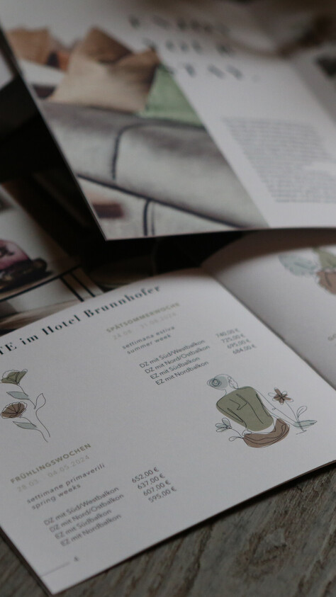 Gerüstet für die neue Saison präsentieren sich die neuen Printmedien vom Hotel Brunnhofer in Dorf Tirol. Die Bildsprache ist klar, das Design strukturiert und harmonisch. Die Farben ruhig und entspannend. Da fühlt man sich schon wie im Urlaub!